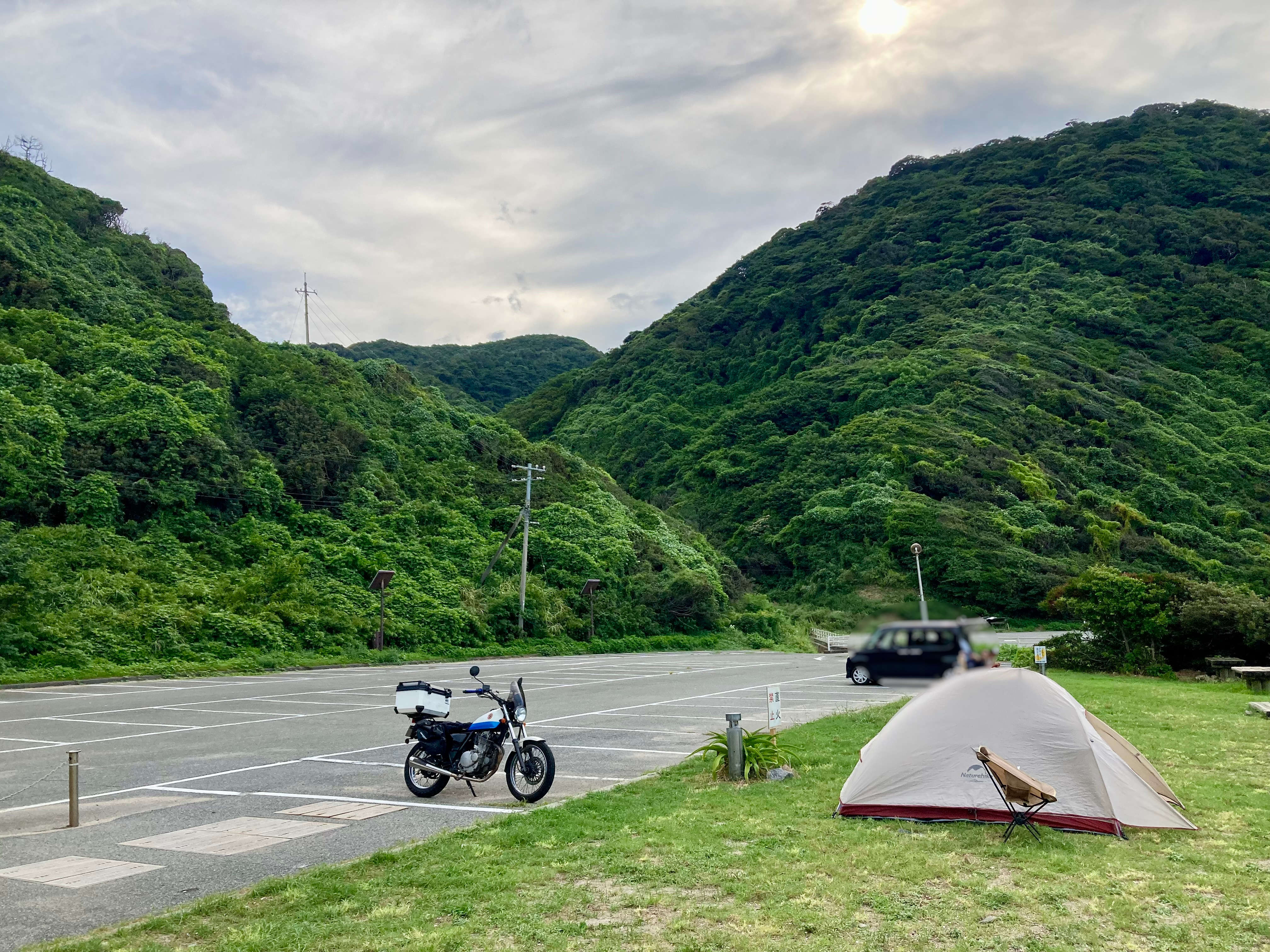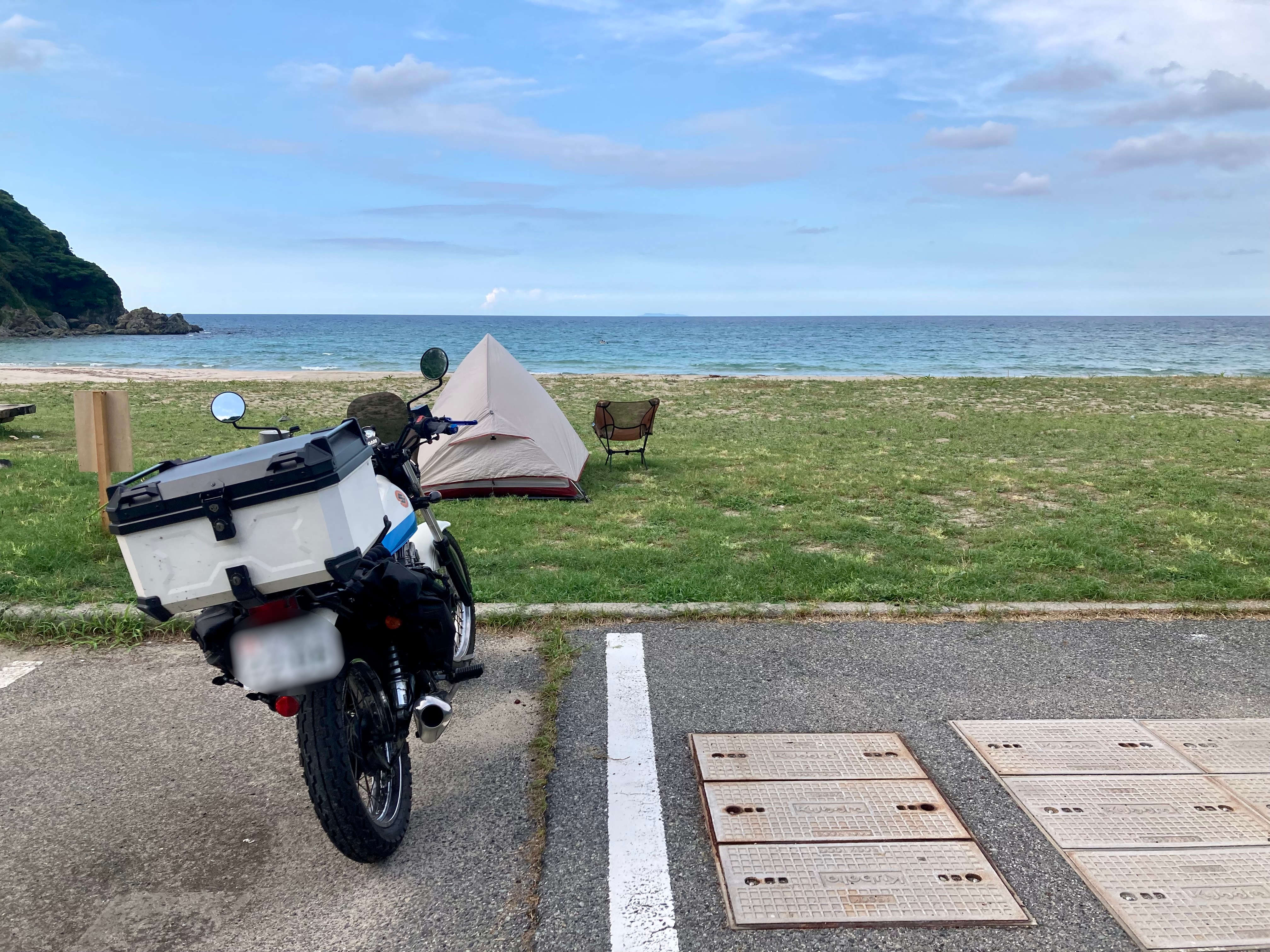 九州から舞鶴港へ向かう途中の中継地点として利用しました。平日利用だったため、宿泊は私ひとりで完ソロキャンプを体験。日中はデイキャンパーが多い印象でした。海を眺めながらのんびり過ごせるロケーションは最高ですが、9月は夜でも蒸し暑く感じました。春や秋の涼しい時期が特に快適だと思います。また、深夜に車で数名訪れ話し声が響いたのは少し残念でしたが、無料キャンプ場ならではの環境と割り切れば十分楽しめます。