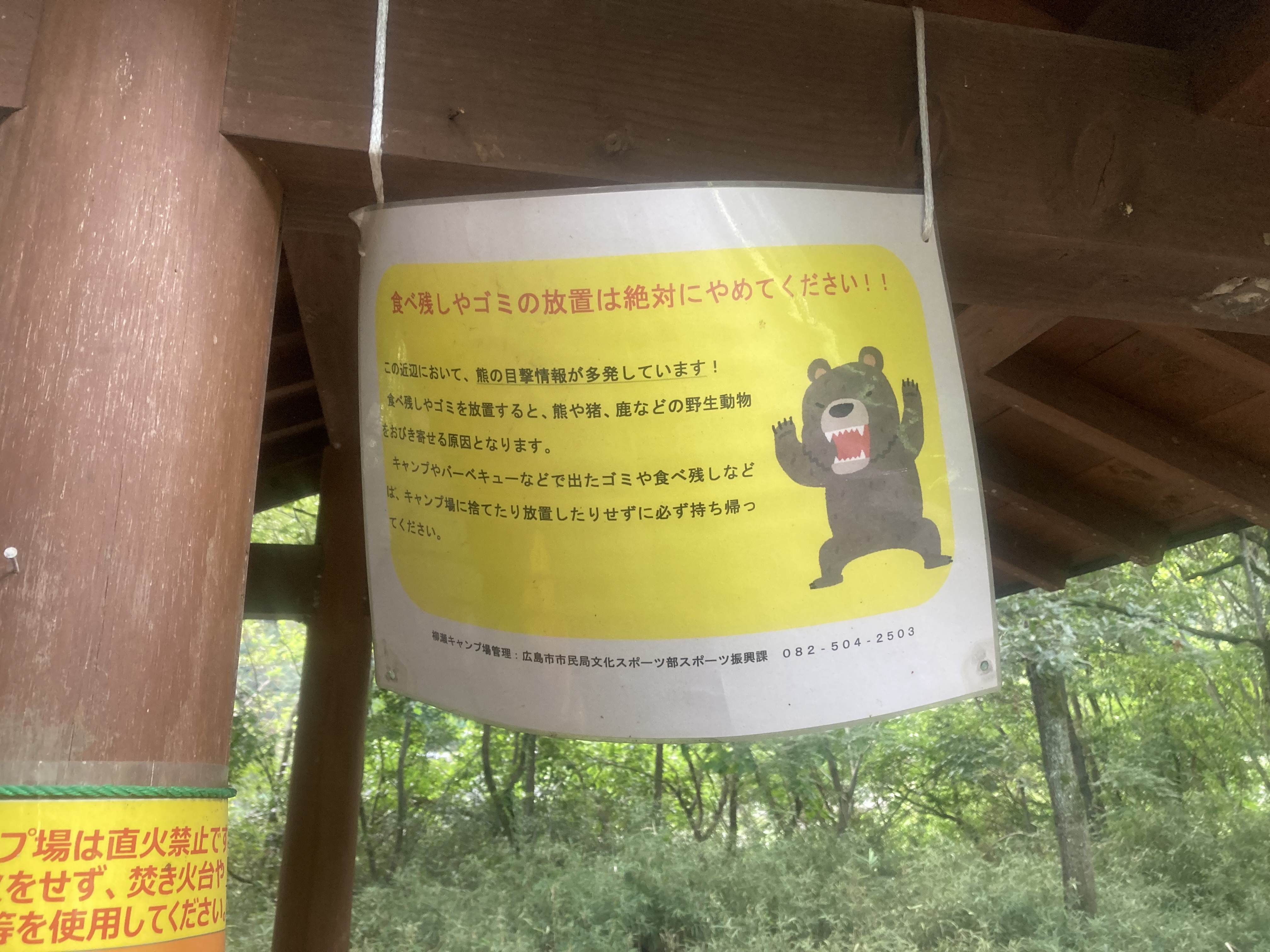 • 熊の目撃情報あり。食べ残しやゴミは必ず密閉し、放置は厳禁