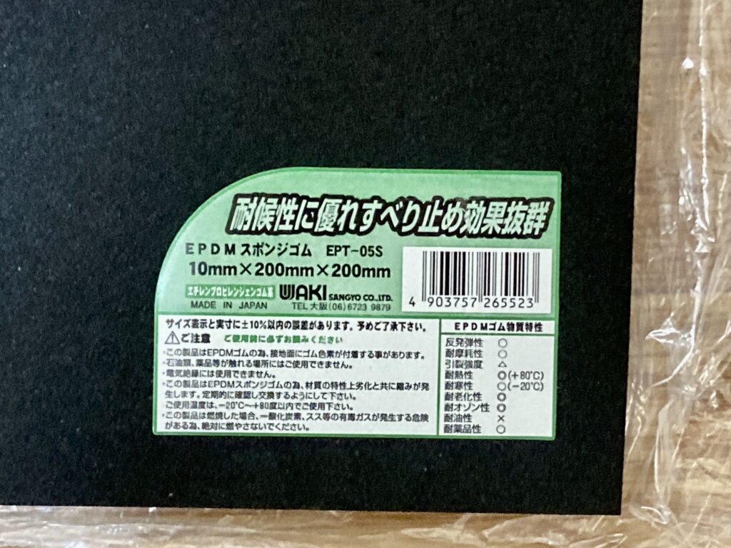 - EPDMスポンジゴム 厚み10X幅200X長さ200mm