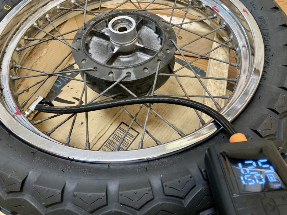 また、ビード落としやタイヤの装着は体全体の力を使う必要があり、慣れている人のようにスムーズにはいきませんでした。特にビードがなかなか上がらず原因が分からなかったのですが、結局は新品チューブに穴が開いて空気が漏れていたことが原因。結果として大幅に時間をロスすることになりました。