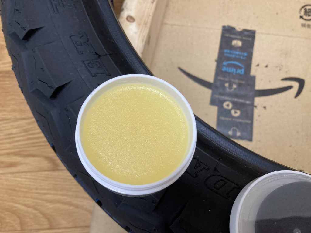 タイヤの両面にビードワックスを塗ることで、装着がスムーズになります。