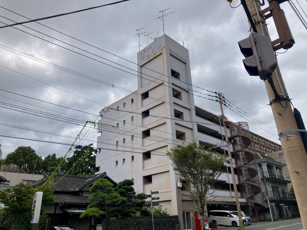 別府公園から青山通りに出ると、青山ビルが見えるので、これが書肆ゲンシシャの目印です。