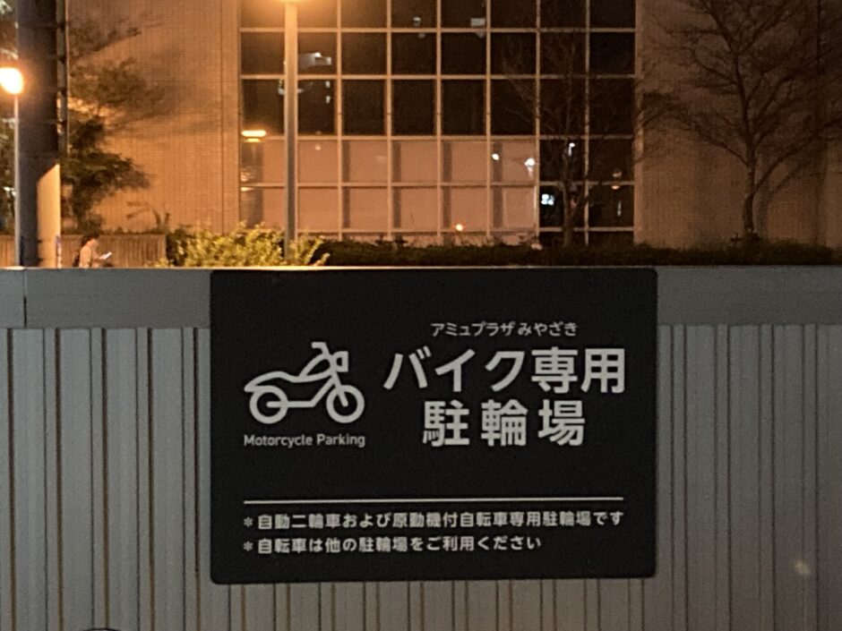 宮崎駅周辺は原付向けの駐輪場情報は多いものの、125cc超の自動二輪を停められる場所は意外と少ないのが実情です。しかし、アミュプラザみやざきには 大型バイク対応・24時間利用可能・無料 の駐輪場が複数あり、ツーリング中の立ち寄りには非常に便利です。