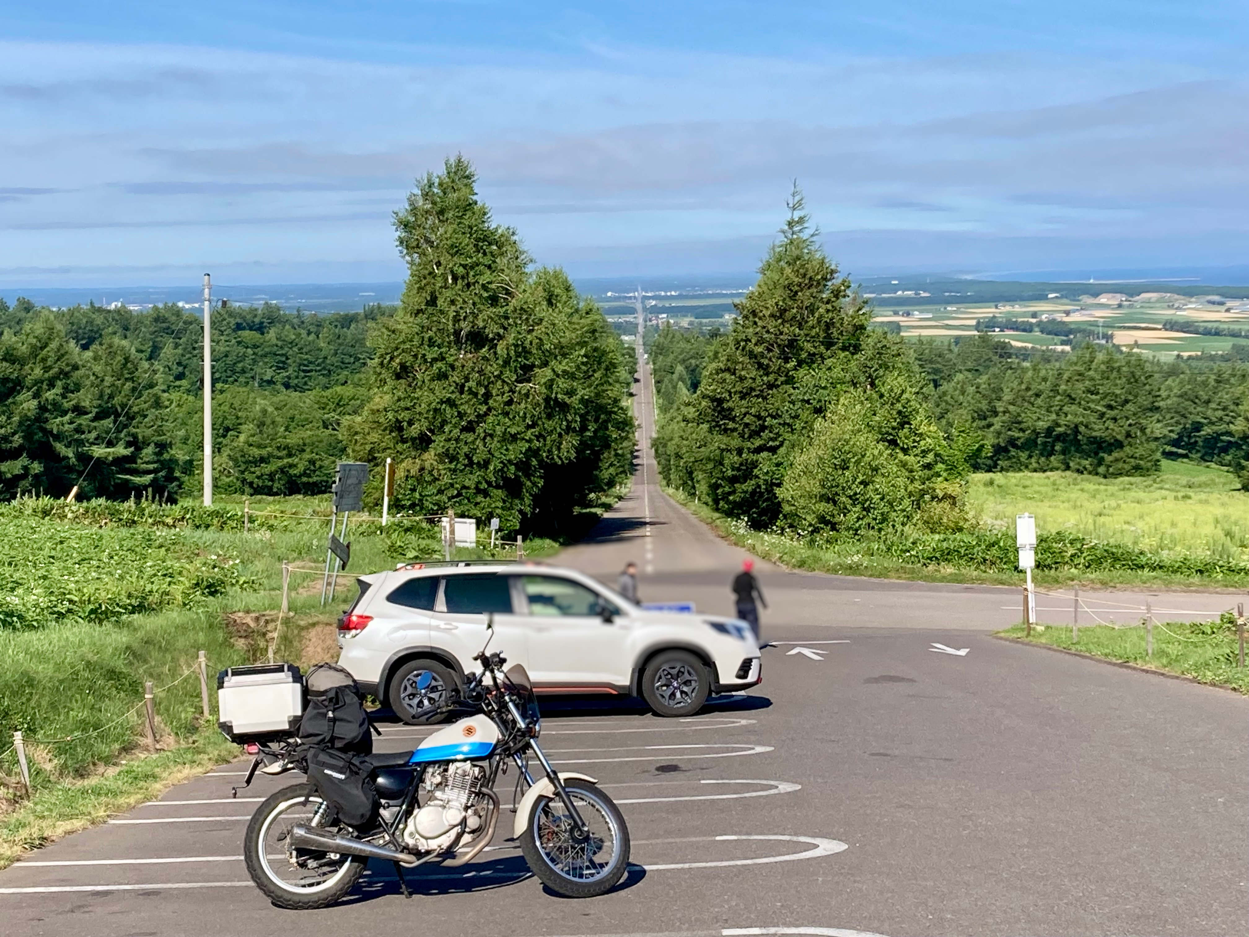 私は網走から知床方面へ向かう途中に立ち寄りました。北海道を時計回りで回っていたため、ナビがゴール地点からのルートを案内してしまい、順路が逆になってしまいました。それでもスタート地点で振り返ると、本当に天に続くようなまっすぐな道が目の前に広がり感動。バイクを停めて絶景を背景に記念撮影でき、最高の思い出になりました。