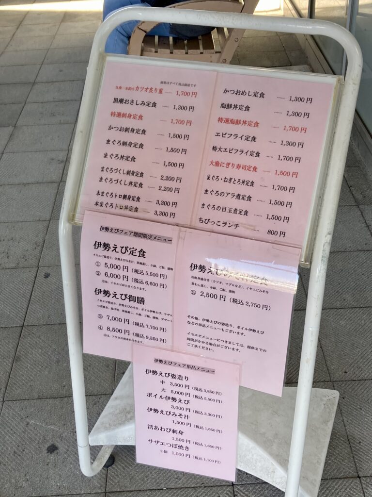 午前中に都井岬を観光し、そのまま日南フェニックスロードを通って北上していた際、たまたま目に入ったのが「港の駅めいつ」。平日にもかかわらず、店前には多くの人がウェイティングシートに名前を書いて順番を待っていました。お昼時だったため最初は諦めようかと思いましたが、「一本釣りカツオ炙り重」がどうしても食べたくなり、私も名前を書いて待つことに。