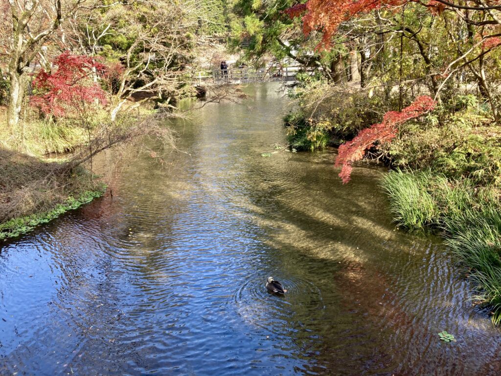 最後は、由布院の金鱗湖 へ。水面に映る紅葉と街並みは独特の雰囲気があり、観光と紅葉を同時に楽しめるスポットです。街歩きをしつつ、由布院ならではのカフェやお土産屋にも立ち寄れます。