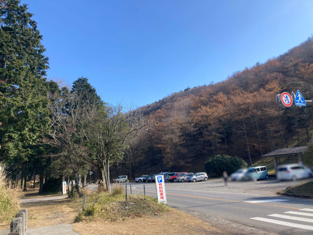 登山口には無料の駐車場があり、満車の場合でも、バイクなら空いたスペースに駐輪できるため、立ち寄りやすいスポットになっています。